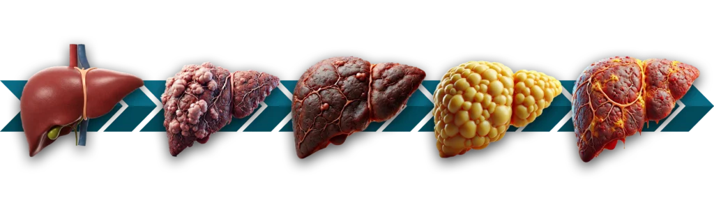 A gordura no fígado não tratada pode evoluir de forma gradual. Inicialmente, ocorre a esteatose hepática (fígado gorduroso), onde há acúmulo de gordura nas células do fígado. Se não for tratada,